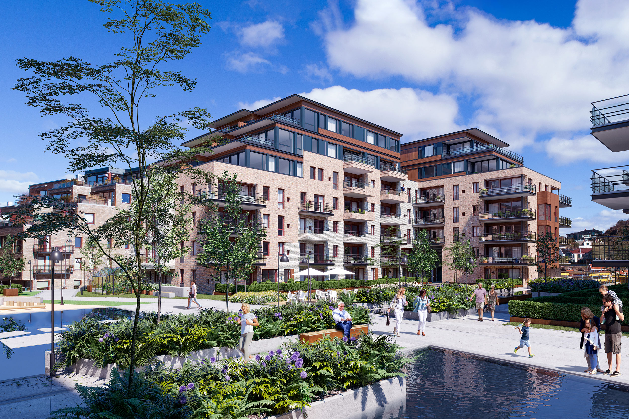 De fleste leilighetene er gjennomgående med store vindusflater for maksimal glede av sol, lys og utsikt, enten det er mot innseilingen med Oksøy og Byfjorden, elvebredden med lakseelva Otra eller båthavna og livet på Bystranda.