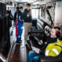 Pass på at ingen kommer inn eller oppholder seg i bussen uten hørselvern. Hvis noen skulle sovne under rulling, må lyden skrus ned og vedkommende få tilstrekkelig beskyttelse før lyden skurs opp igjen.